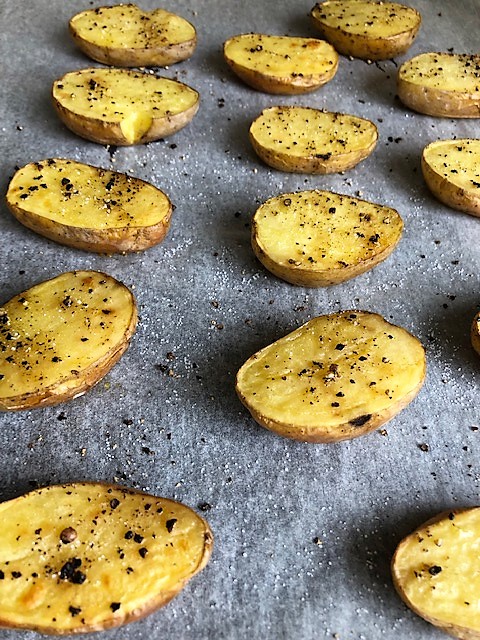 Jag serverade potatishalvor tillagade i ugnen till. Lägg in dom ca tjugo minuter innan köttet (om du tillagar det i ugn) så blir allt klart samtidigt.