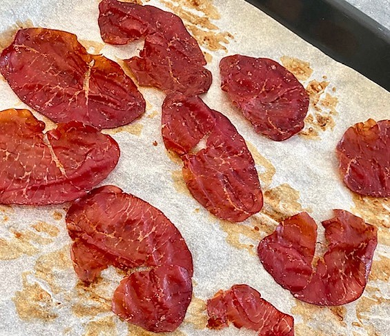 Bresoala kan användas till mycket. Passar utmärkt på en charkbricka eller som här rostade i ugnen till chips. Blir då ett utmärkt tilltugg till en god soppa, t.ex. Crème Ninon, eller att strössla över en sallad.