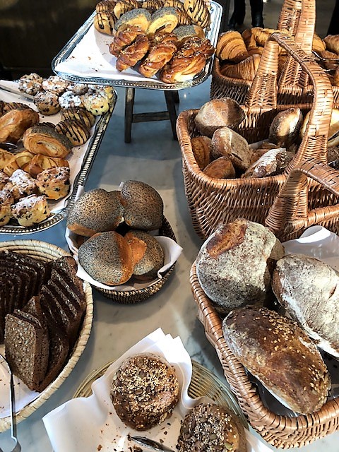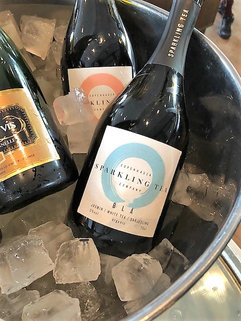 På ett bord bredvid finns det bröd av alla de slag. I baren finns det tre behållare med olika dryck. Jag väljer den hemlagade lemonaden med ingefära. På ytterligare ett litet bord finns det en kylare med mousserande. Man kan välja mellan en cremant och tre olika sparkling tea, en väldigt speciell och trevlig dryck som du kan läsa mer om HÄR. Två av dem med en alkoholhalt på 5% och en helt alkoholfri.