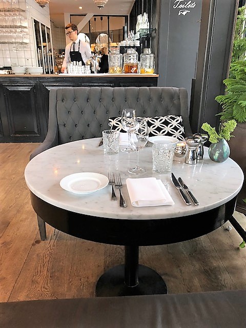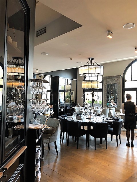 Lokalen är ljus och fin, inredningen påminner om en bättre bistro med fint porslin och linneservetter.