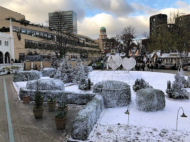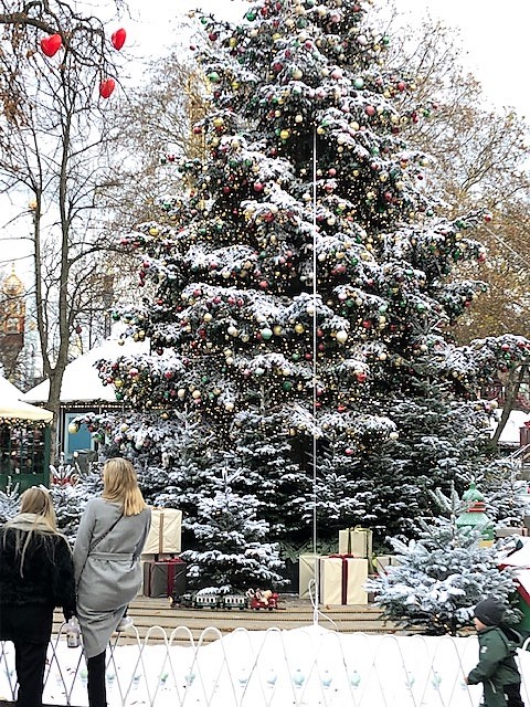 Servicen är något svajig. Det är flera olika som serverar vid vårt bord. Vissa bättre andra lite sämre men alla är trevliga. Man kan sitta här i flera timmar och njuta av mat, dryck, trevlig miljö och utsikten av ett juligt Tivoli. Priset för det hela får man väl betrakta som överkomligt, 395 danska kronor för att äta och dricka hur mycket man orkar. Sen är det bara att klä på sig och ta en runda inne på Tivoli, om man så önskar!