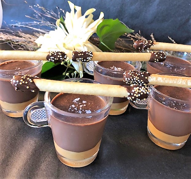 Toppa glasen med lite mer flingsalt och servera med chokladdoppade grissini. Klart!