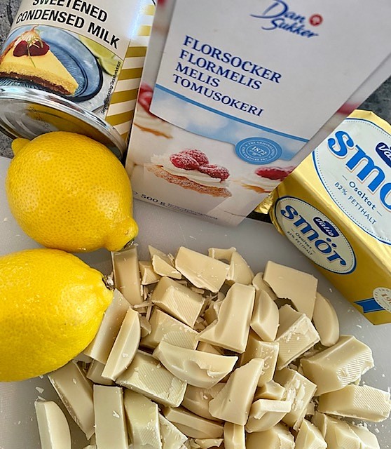 Farligt goda tryfflar gjorda på vit choklad med frisk smak av citron rullade i finhackad mandel.