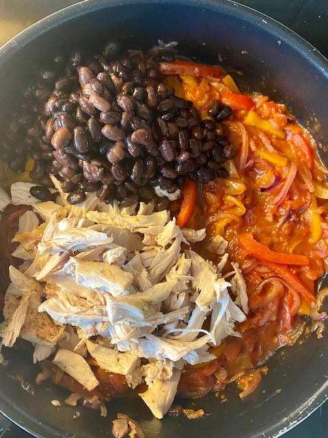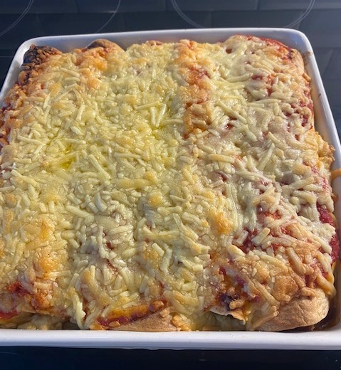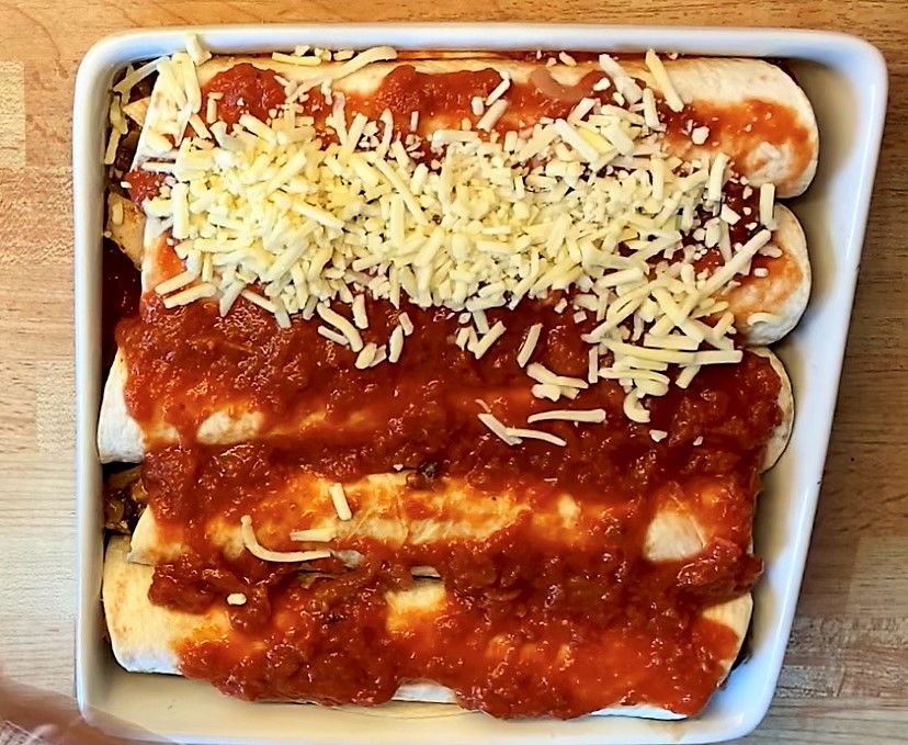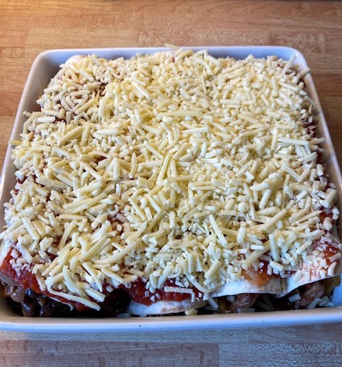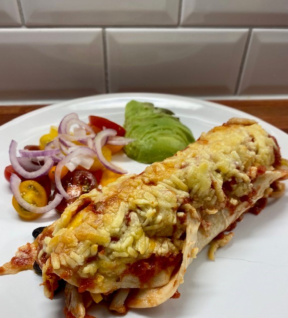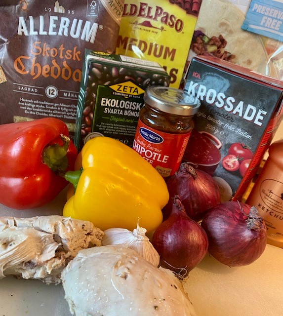Kyckling, paprika och bönor i tortillas toppade med riven ost som får smälta i ugnen. Smakrikt och kalorisnål rätt som endast innehåller 480 kcal/portion.