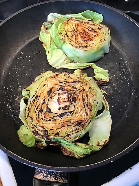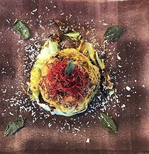 Lägg upp kålen på tallrik, skeda över smöret, garnera med salvian och strö över parmesanost. Toppa ev. med rödbetsskott. Servera direkt!