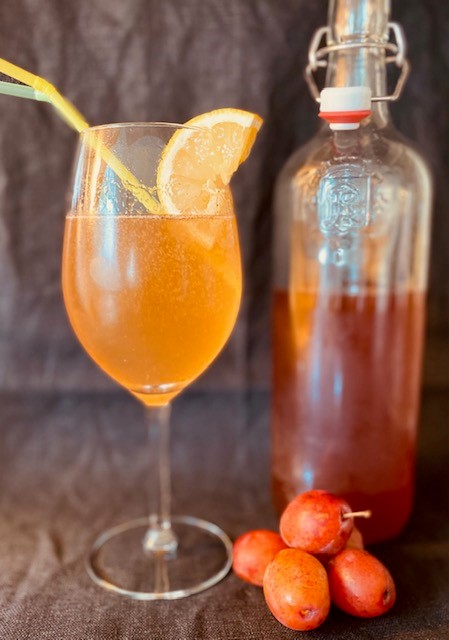 Blanda valfri mängd med kolsyrat vatten eller tonic. Önskar man mindre syra i smaken är det bara att dra ner på mängden vinäger.