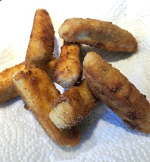 Fritera några i taget tills de får fint gyllenbrun färg. Låt rinna av på hushållspapper och strö ev. på lite salt och/eller cayennepeppar.