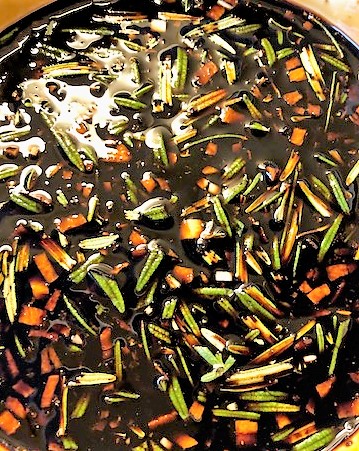 Blanda ihop alla ingredienserna till marinaden. Häll marinaden över köttet när det stekt färdigt, låt svalna och lägg sen över i dubbla plastpåsar tillsammans med marinaden. Förvara i kylen och vänd påsen då och då så att marinaden fördelas över hela köttbiten. Kan ligga upp till två dygn. Ta fram köttet en timme innan det ska serveras och skär det i tunna skivor. Lägg upp på ett fint fat och garnera med färsk persilja.