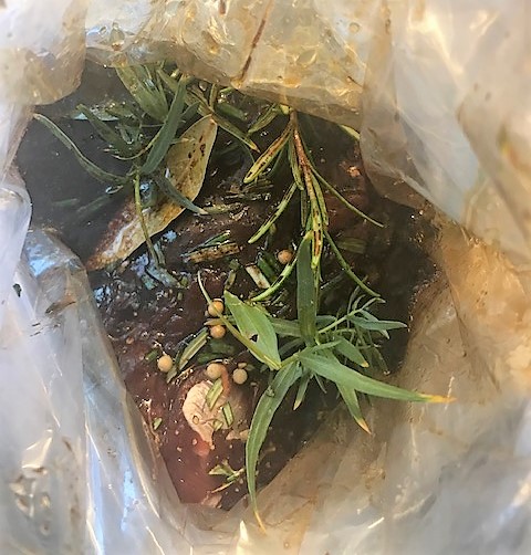 Blanda ihop ingredienserna till marinaden. Putsa köttet och låt marinera  helst ett dygn.