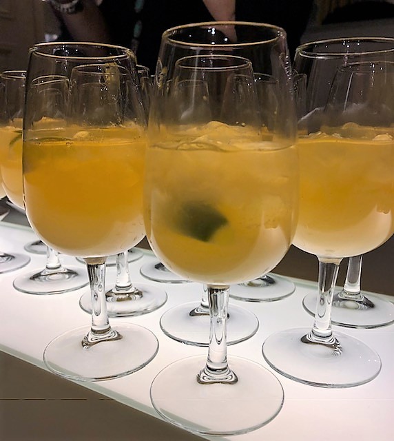 Kvällen inleddes med en välkomstdrink bestående av Ginger beer spetsad med Yuzu, som är en citrusfrukt som kommer från Östasien. Till det serverades tilltugg i form av rättika marinerad i Ponzu, som är en citruskryddad soja samt rischips. Supergott och riktigt fräscha smaker.