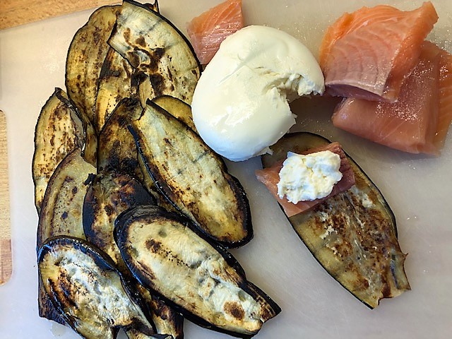 Jag brukar rulla in kött i grillade aubergineskivor. Men detta är första gången jag testar med fisk. Måste säga att det överträffade mina förväntningar! Riktigt fräscht, lite lättare än kött men ändå mättande. Dessutom riktigt gott och smakrikt.