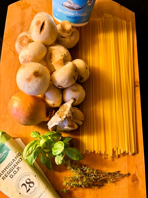 Vegetarisk pastarätt med svamp som är både krämig och kalorisnål.