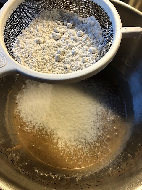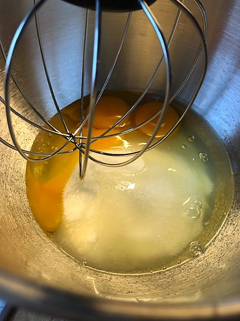 Vispa ägg och socker pösigt i en bunke. Tillsätt vaniljsocker, bakpulver, kanel, kardemumma, ingefära, salt och olja. Blanda runt väl. Sikta i vetemjöl och blanda runt till en jämn smet. Rör sedan i även de rivna morötterna.