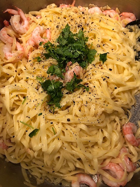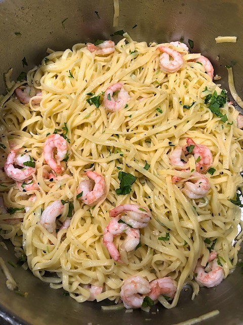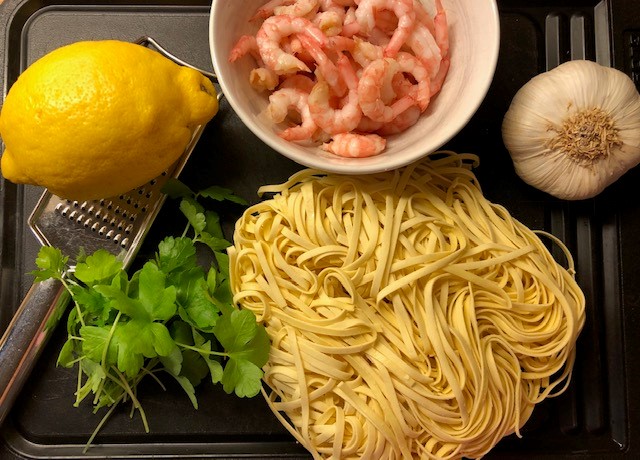 Pasta med vitlöksräkor
