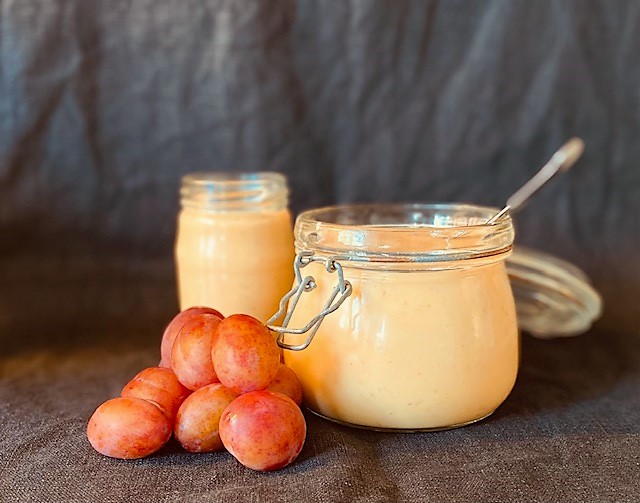 Du behöver inte skala plommonen då det ger fin färg åt curden.