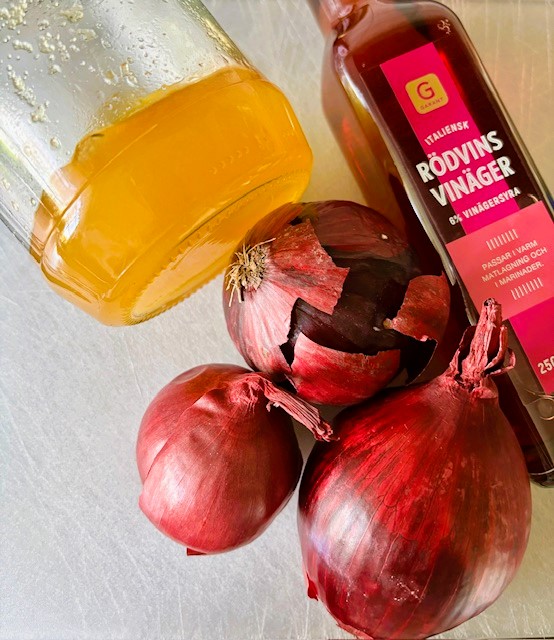 • 3 rödlökar, skivade