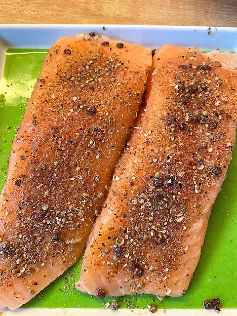 Smakrik och superfräsch rätt med lax kryddad med rosépeppar och korianderfrön.