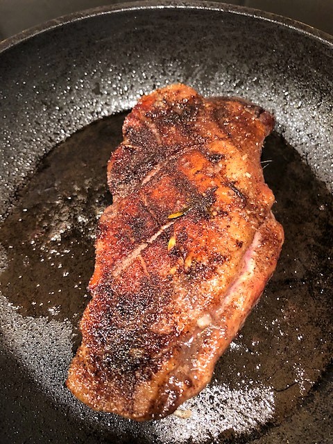 Värm ugnen till 125 grader. Skåra skinnsidan på ankan och gnid in salt, peppar och fem kryddor. Lägg med skinnsidan ner i en stekpanna och sätt på värmen något högre än medeltemperatur. Stek tills skinnet är genomstekt och krispigt. Vänd bröstet, sätt i en köttermometer och stek färdigt mitt i ugnen tills innertemperaturen är 67-68 grader. Låt sen vila under folie i ca 15 minuter.