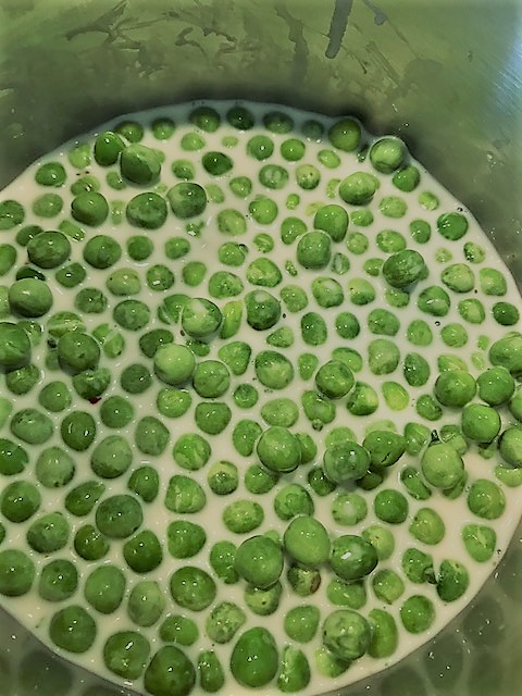 Lägg ärtorna i en kastrull tillsammans med grädden och koka upp.
