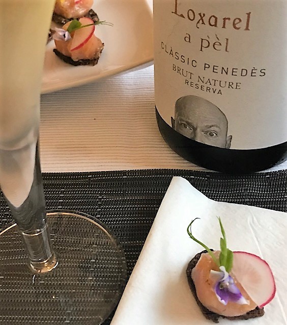 Lägg ut gravlaxskivorna på plant underlag. Bred sås på ena sidan och rulla ihop. Skär sen varje laxbit i 3-4 skivor och placera på rågbrödssnacksen. Garnera med ätliga blommor och /eller dill.