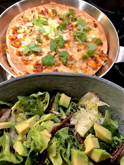Lägg på färsk koriander och servera med en god sallad, limeklyftor, en klick crème fraiche eller gräddfil och njut!
