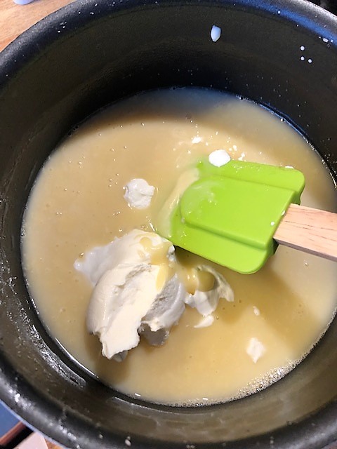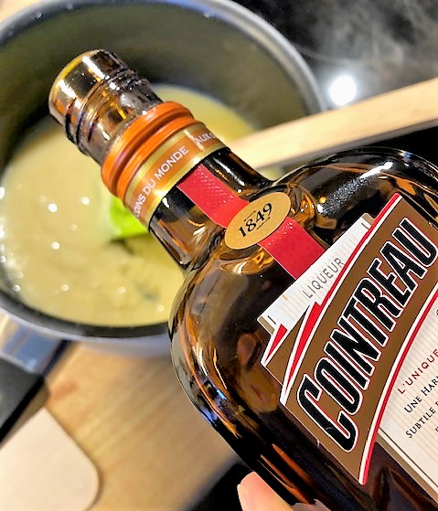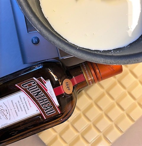 Koka upp grädde i en kastrull. Ta från värmen och bryt ner chokladen. Blanda runt tills den smält. Blanda i kesella och Cointreau. Rör även i det mesta av lakritsen. Börja med en mindre mängd och smaka dig fram hur mycket lakritssmak du vill ha.