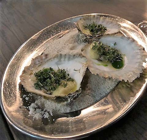 Ostron med strävbladssolros + Ragu på jordärtskocka med friterat skal