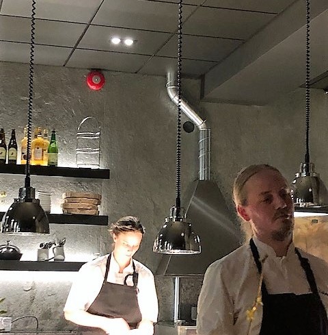 Titti och Daniel står båda i matsalen och hälsar oss välkomna och berättar lite om varför de bestämt sig för att starta detta projekt. För det är mer ett projekt än en restaurang. Eller mer som ett rum med plats för samtal om och kring mat och vin.