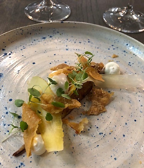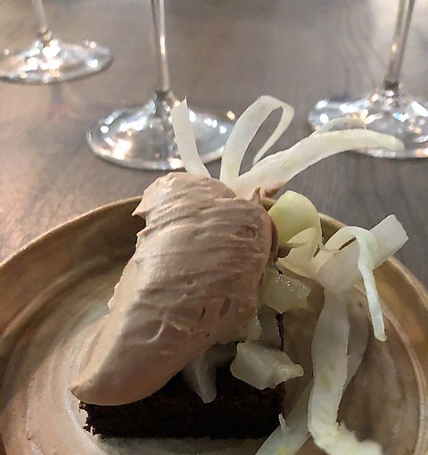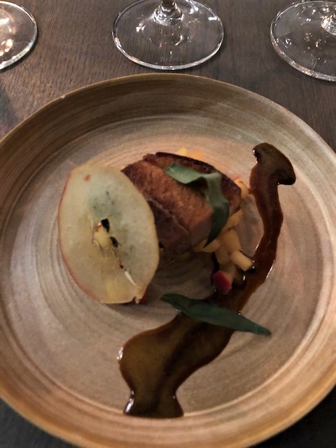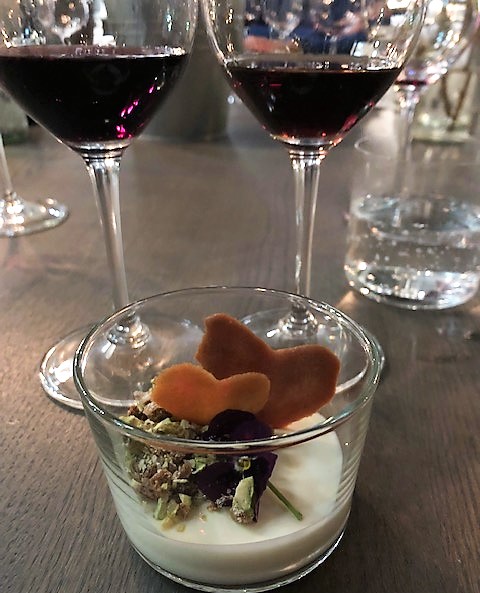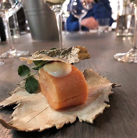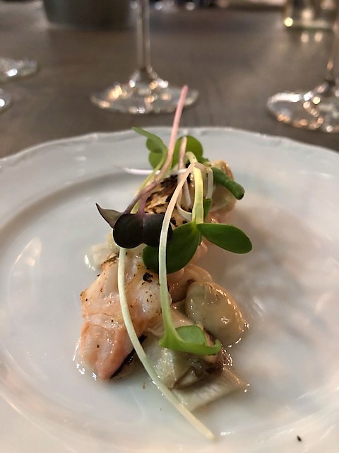 Jag väljer att inte öppna min meny. Jag föredrar att bli överraskad. Dessutom presenteras varje rätt och vin noga under kvällens gång. Men våra guider tar aldrig över så det känns som en föreläsning. De guidar oss genom tankar och smaker och det finns gott om tid och utrymme för frågor om olika vin och tillagningstekniker. För här serveras mat värdig vilken fine dining restaurang som helst, men på ett avslappnat och familjärt vis. Vissa av gästerna är matnördar, några andra vinnördar och en del bara allmänt intresserade eller sällskap till någon men alla verkar ha trevligt. Bordet är ganska stort men det känns lagom intimt ändå.
