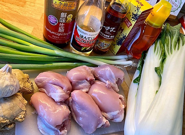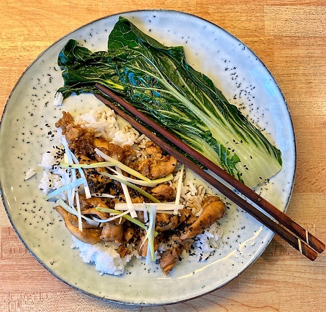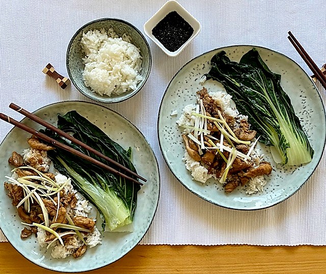 Servera ihop med ris och pak choi.
