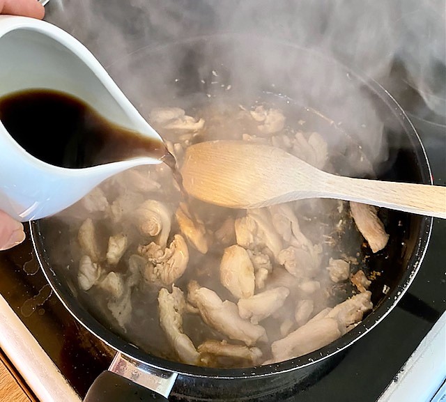 Rör i honung, soja, risvinäger och 1 dl vatten. Låt koka upp och låt puttra ihop 3-5 minuter tills såsen tjocknat något.