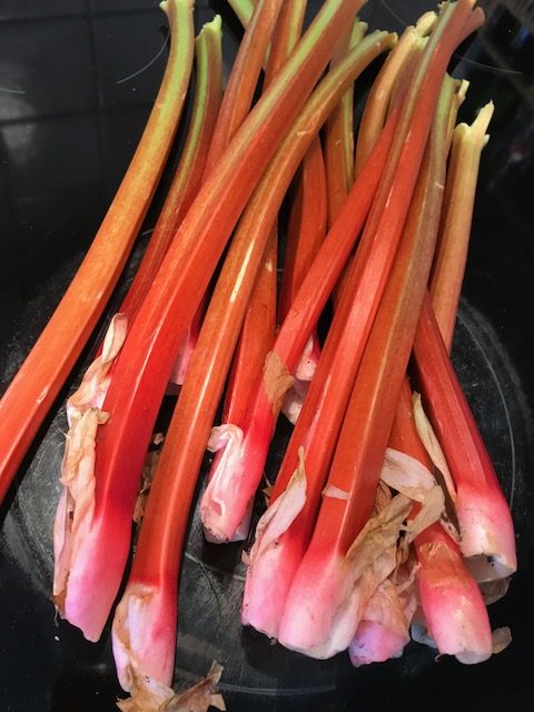 Till denna paj går det lika bra att använda lite grövre rabarber eller som här de allra spädaste.