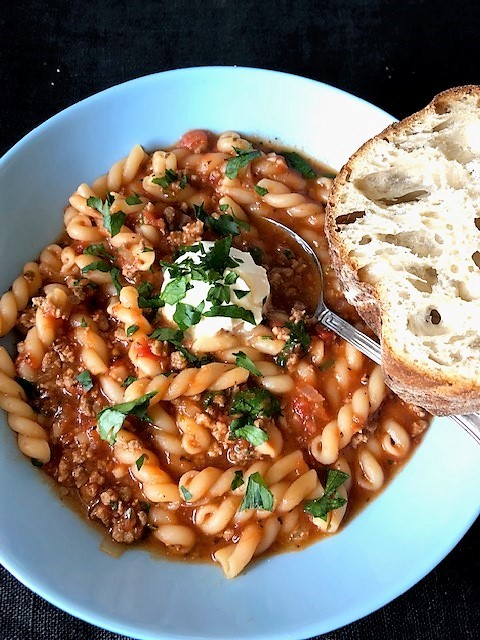 En god och mustig soppa som går riktigt snabbt att tillaga. Värmer gott vilken frusen dag som helst. Allt tillagas i samma gryta, vilket är både smidigt och sparar disk.