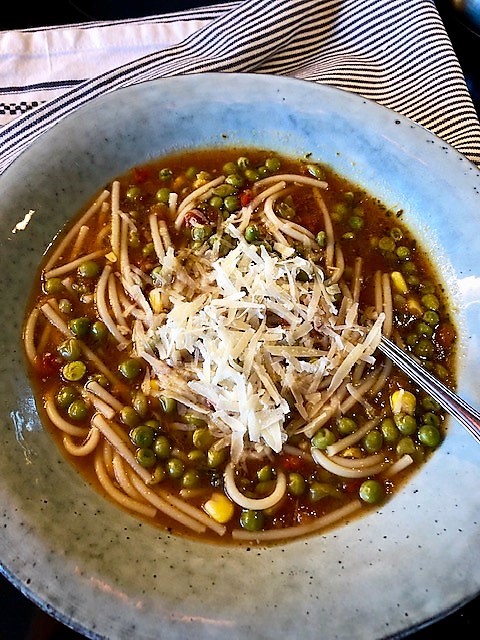 Lägg upp i djupa tallrikar, ringla på lite god olivolja och strö på parmesanosten. Klart!