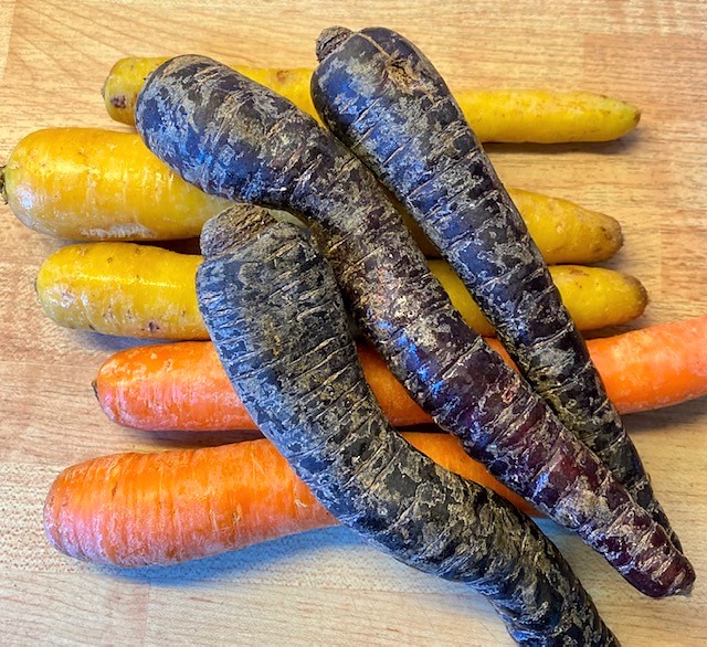 Att köpa lokalproducerat, och gärna direkt från gården där det odlas, är något jag gärna gör när jag kan och hinner. Senast jag var ute hos en bonde hittade jag nyupptagna fina morötter i olika färg.