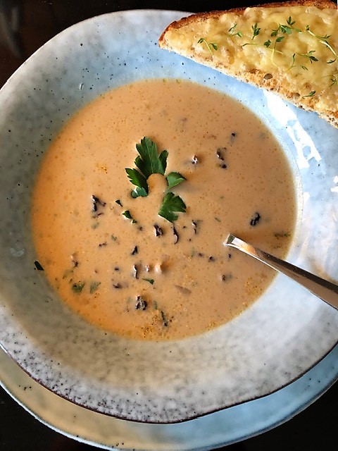 Soppan är festlig som en liten förrätt och då räcker den till 4 personer. Men vill man äta den som varmrätt är den lagom till 2 personer.