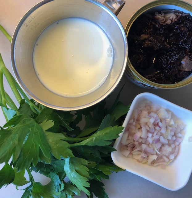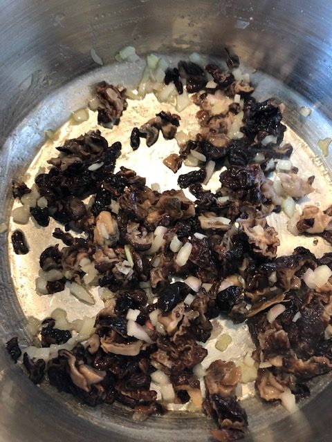 Smält smöret i en kastrull och stek löken några minuter så den mjuknar. Tillsätt murklorna och stek en liten stund under omrörning. Strö över mjöl och blanda runt ordentligt. Häll på buljongen och låt soppan sjuda ca 10 min. Rör då och då. Häll på grädde och låt allt bli varmt. Smaka av med salt och peppar.