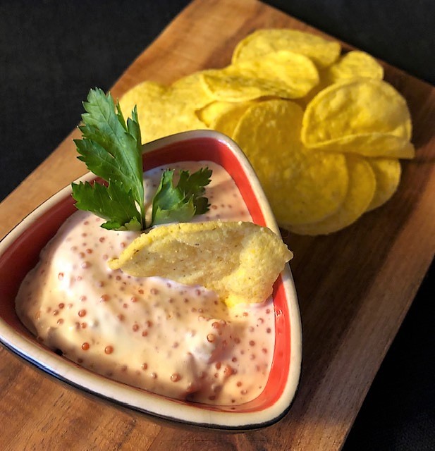 Vill man ha en kalorisnålare variant kan man välja lätt crème fraiche istället och byta nachochipsen mot gurk- och morotsstavar.