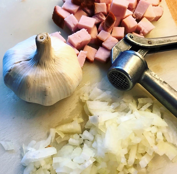 Koka pastan enligt anvisning och tillsätt broccolin när 4 minuter återstår. Häll av i durkslag och ställ åt sidan. Hetta upp oljan i en panna och stek löken mjuk, tillsätt vitlök och stek någon minut. I med skinka, grädde, senap och koka upp.