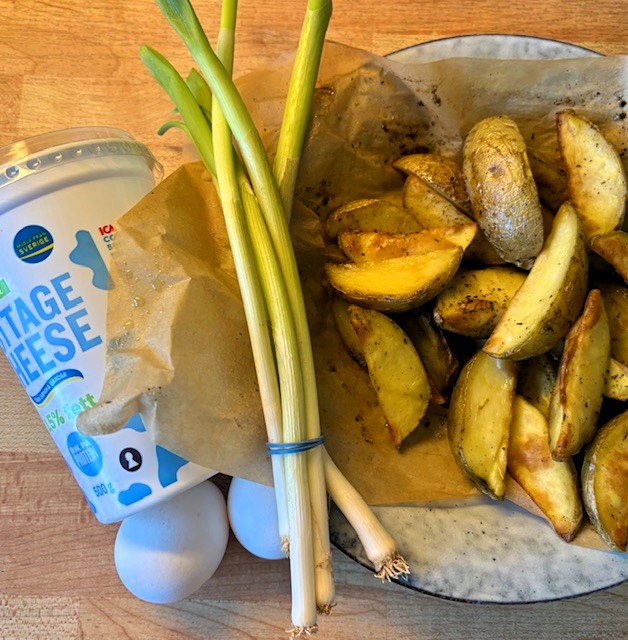 Har du rester av kokt eller ugnsstekt potatis blir rätten klar på några minuter. Annars går det även bra att snabbkoka potatisen i mikron innan man steker den.
