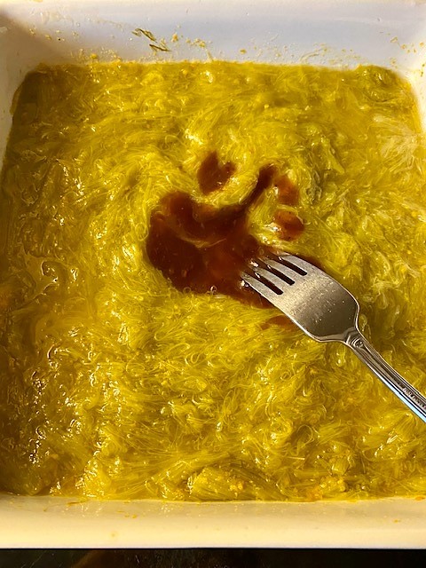 Ta ut formen och låt svalna något. Blanda i hallonsylt och äggulor.