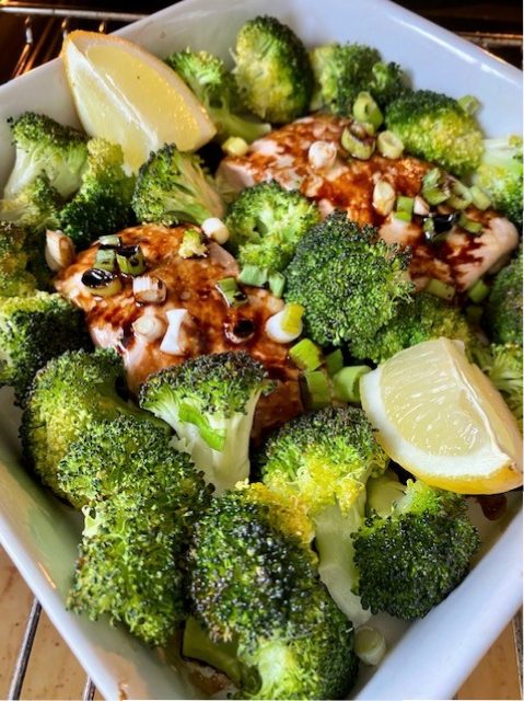 Ugnsbakad sojalax med broccoli