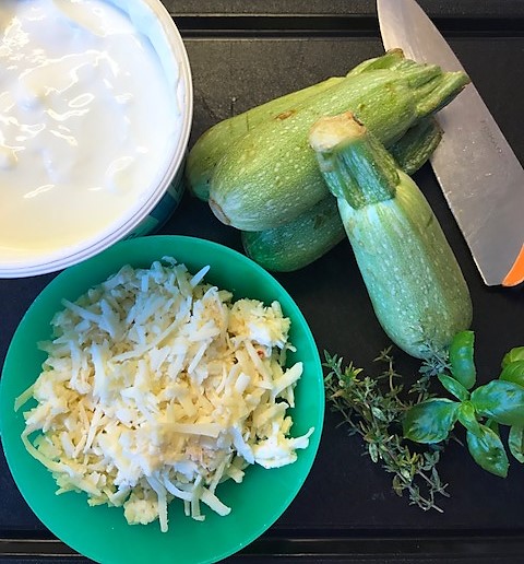 Använd gärna minizucchinis om du kan hitta det, dom är lite sötare och mjällare i smaken, annars fungerar det med den stora sorten också.